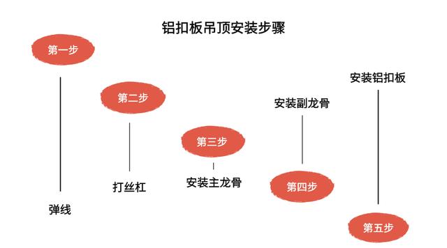 鋁扣板的吊頂并不復雜,之前我們專門做過一期鋁扣板吊頂的施工解析,你可以查看往期文章記錄去回顧一下,所以今天我只講大致的步驟,具體請參考下面這張圖喲~