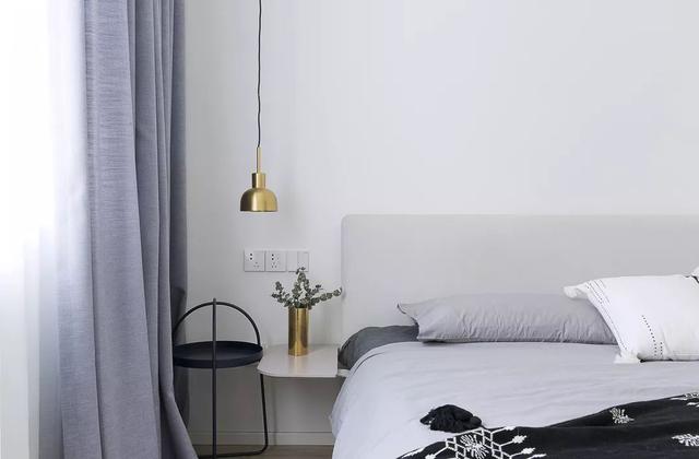 臥室用了雙層的窗簾,白色和灰色的搭配,看著舒適又大氣。