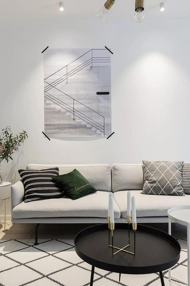 背景墻掛了一幅樓梯的藝術畫,看上去有一點延伸感,感覺空間都變大了。
