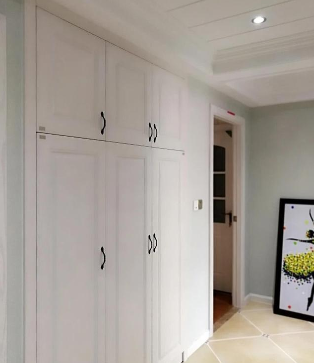 走廊還充分利用了內置的柜子,可以容納很多東西,柜門設計簡單美觀。