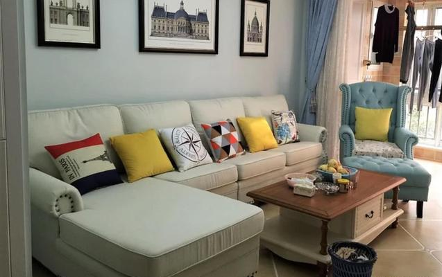 客廳有陽臺,采光很好,裝修會打開陽臺,使整體空間更大。雖然在外面晾曬衣服對整體的優雅是有害的,但也只能如此。沙發上的枕頭總是擺放得很整齊,妻子工作很努力。