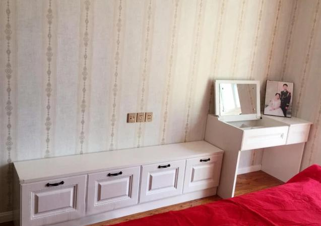 書桌和櫥柜連接在一起,節省空間,使用方便。但是現在這個孩子很小,暫時不需要。在一所房子里住了三年,它還是那么干凈整潔。這是我妻子的能力。跟著她,我也學會了一些好習慣。只有房子一直保持清潔,財神才會來。