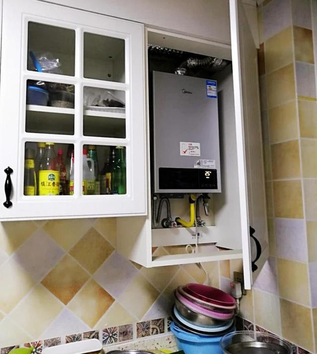 這是廚房里的吊柜。里面有炒蔬菜的調味料。非常整潔。