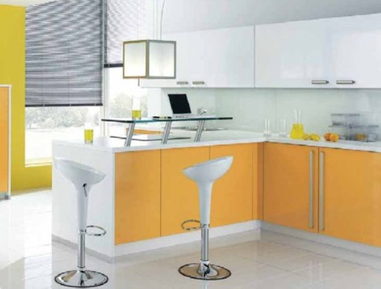在傳統(tǒng)的L 形料理臺(tái)上增加個(gè)小支架,臺(tái)面的功能立刻強(qiáng)大了很多。你可以在上面放筆記本,報(bào)紙,一個(gè)美好的清晨就從這個(gè)開始。