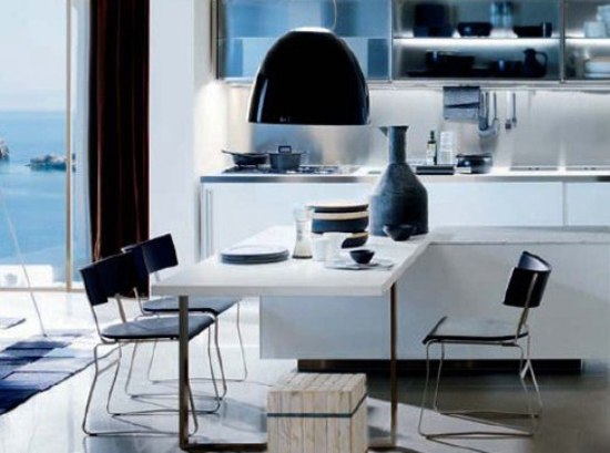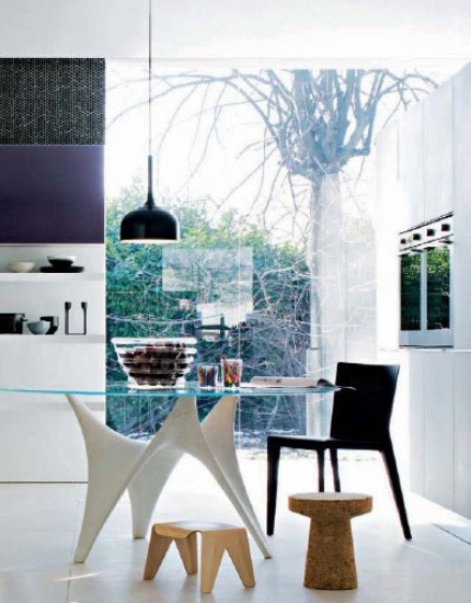 把餐臺(tái)和料理臺(tái)合并不是件新鮮事,但很多都將底部做成儲(chǔ)藏柜,這樣一來舒服度就會(huì)降低。這個(gè)設(shè)計(jì),將餐臺(tái)部分做成鏤空,坐在那再也不用擔(dān)心兩腳無處可放了。