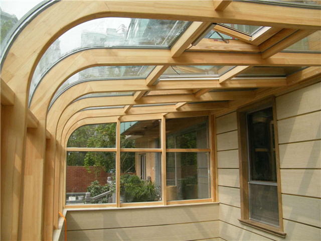 2、陽光房頂面形狀:彎圓頂的價格要大于尖頂的價格,尖頂的價格要大于平頂和斜頂的價格,可以說平頂和斜頂陽光房在價格和實用性上都不錯。這種頂排水密封都不錯,而且采光性也比較好,一般都用后者。