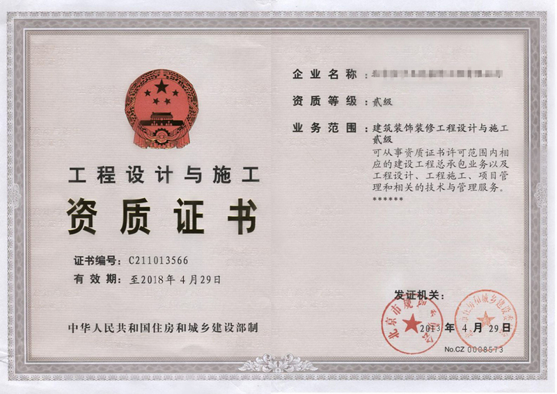 裝修合同中要求裝飾公司要寫明其資質(zhì)等級,這個資質(zhì)是指其施工資質(zhì)而非設(shè)計資質(zhì),這就意味著其不具備裝修施工的資格,業(yè)主在簽合同時一定注意。還有在看證書時還要注意裝飾公司資質(zhì)證書的等級及頒發(fā)單位是否符合國家建筑裝飾的要求。