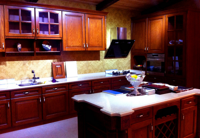 實木整體櫥柜比較適合偏愛純木質(zhì)地的中年消費者高檔裝修使用。風(fēng)格多為古典型,其門框為實木,以櫻桃木色、胡桃木色、橡木色為主,門芯為中密度板貼實木皮,這樣可以保證實木的特殊視覺效果。