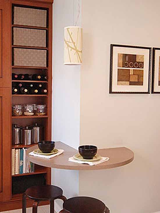 偶像劇里經常會說這樣一句話——“有愛的地方就是家”,而小編以為有餐桌的地方就可以成為餐廳。有了這款掛壁式餐桌,再配上兩把小木椅,一個簡單的墻角小餐廳就建成了!看這個小餐桌,它像一只蟹腳般牢牢的夾著墻角,非常可愛、俏皮。其桌面圓潤,大小適中,恰好能容納兩人就餐。