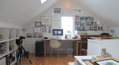 利用閣樓空間來作為書房,墻面上大小不一的畫框突顯出整個墻面的裝飾感。