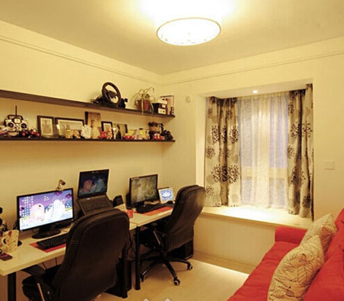 在書房中擺放上一張靚麗的沙發(fā),可以供閱讀者在累了的時候在沙發(fā)上小歇一下,飄窗的設(shè)計也是這間書房的特色之一,把這間書房的實用性大大提高了不少。