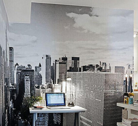 簡單的書房設(shè)計有時候可以運(yùn)用墻面來讓整間書房空間達(dá)到超強(qiáng)視覺感哦,就如這間書房一樣,在墻面上以大型城市照片來代替原本單調(diào)的墻面,就算是擺放上一張簡約的小書桌也讓這個空間看上去顯得別致。