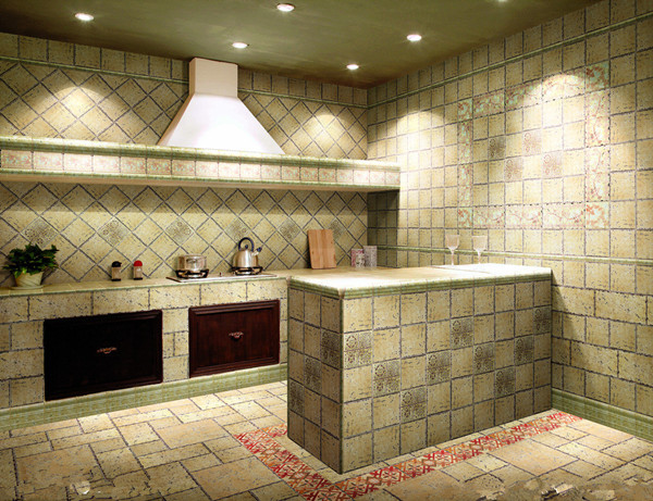 3、花磚營造氣氛:廚房瓷磚可以選擇一套花式瓷磚,點綴平淡的墻面,為主婦下廚平添愉悅、活潑的氣氛。花磚有的主打藝術、時尚風格,有的重點放在自然萬物的生趣,一般一套六塊、十塊或十二塊,個性很是鮮明。