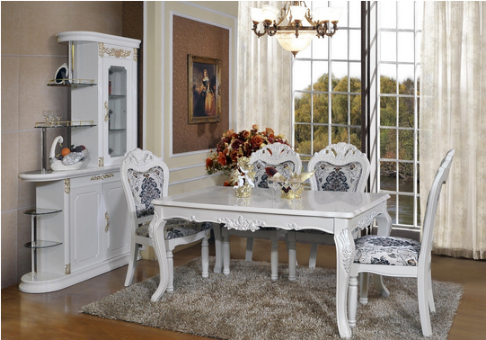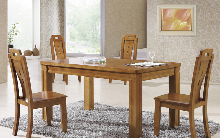 木質的餐桌又可以分為密度板和實木。密度板通常采用實木貼皮的方式制成,保留了原有實木自然的紋理,表面亦平整光滑,但餐桌的邊沿無法再進行一些特殊效果的處理。而實木則很好地展現原木的自然紋理和厚重的質感,增添了居室的自然氣息,同時還可以進行雕、染色、刻等精細加工處理。