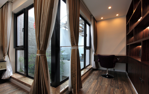 一般來說,客廳、臥室和書房可以選擇同樣材質的窗簾,業主們如果不想為窗簾選擇厚重材質還是輕薄材質操心,最合適的就是選擇雙層窗簾,里面一層是輕薄材質的窗簾,如尼龍綢、薄羅紗和網眼布,外面一層是厚重材質的窗簾,如燈心絨、呢絨和金絲絨等,這樣就可以根據季節和天氣的變化輕松變換窗簾。
