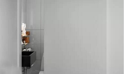 上一款臺盆是狹長形臺上盆,這一款臺盆則是狹長形的臺下盆,基本上都以狹長的外形去適應這片狹長的空間,因地制宜的說法在這類特俗的空間里就是一個經(jīng)典的制勝法寶。