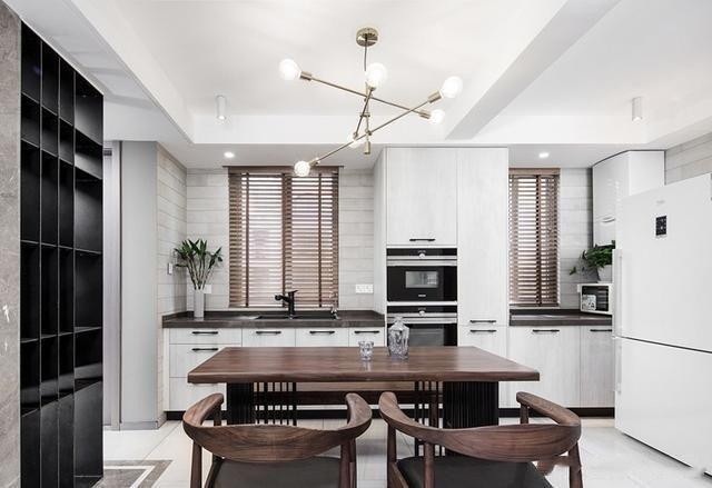 我家做的是開(kāi)放式的廚房,餐廳的餐桌就在廚房旁邊,平時(shí)用餐很方便。廚房靠窗一邊裝的是水槽,水槽底下的收納空間也很大。旁邊是立體式高柜,可以把一些常用電器收納在里邊,很實(shí)用。
