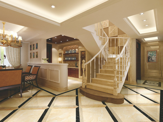 再其次是材質,選擇玻化石比較好,因為它耐磨、明亮,易清潔。也有人喜歡用仿古磚,仿古磚色彩豐富,體現個性,但顏色往往比較重,清洗也有一定的難度。石材最好不用,因為不但石材成本高,色彩單一,而且石材大多具有放射性,表面光潔度和耐磨度也很低。它們往往用在大面積的公共場所。