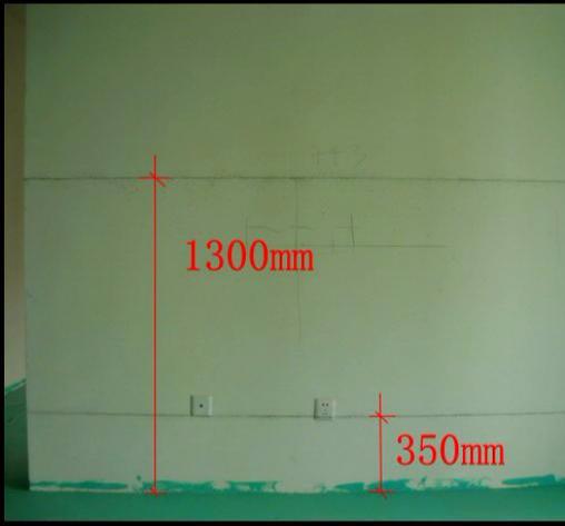 6、 我們要在墻面上一地坪為基礎(chǔ)彈設(shè)水平線,一個(gè)是35cm,一個(gè)是130cm。