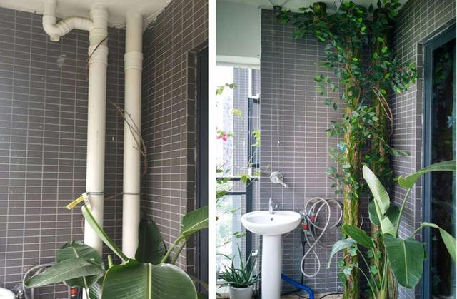 還有這種仿樹藤的裝飾,看起來(lái)像是一棵樹,裝飾起來(lái)也是不錯(cuò)的,一般露臺(tái)空間,外墻磚不動(dòng)的情況下,管道完全可以這樣裝飾