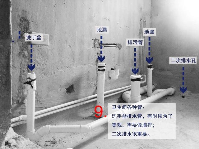 衛(wèi)生間排水管尤其重要。洗手盆的排水管,有時(shí)候?yàn)榱吮3终w的美感會(huì)進(jìn)行墻排處理。業(yè)主在房屋設(shè)計(jì)之時(shí),就必須考慮到這個(gè)問題。不然到時(shí)候可能就晚了。衛(wèi)生間的裝修一定要考慮到二次排水!
