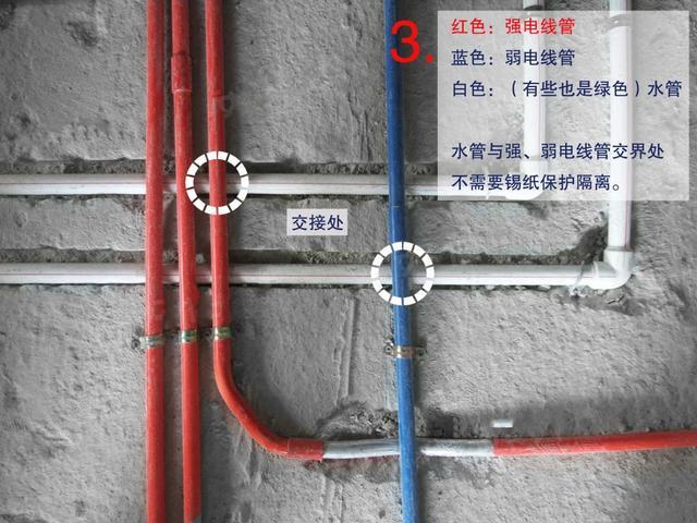 大家都知道電線管分為強(qiáng)電和弱電兩種,劃重點(diǎn):市面上一些品牌的強(qiáng)電線管是紅色的,藍(lán)色線管是藍(lán)色的,建議選用這種,施工時(shí)各種線路七零八落,紅藍(lán)線管易于區(qū)分,后期也便于區(qū)分檢修。同樣的,水管有冷熱水管之分,也有單雙層之分。