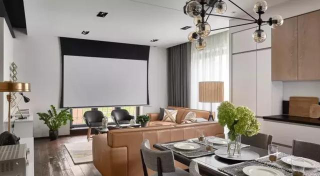 大家見過把投影幕布安裝在客餐廳之間的裝修案例吧?比如下面這個案例: