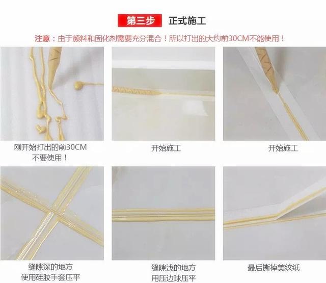 拿到美縫劑先和色卡對比色差,然后找一個不顯眼的地方,局部試做,看看效果,也順便練手,一股腦做完全屋的美縫,很可能要返工重做。
