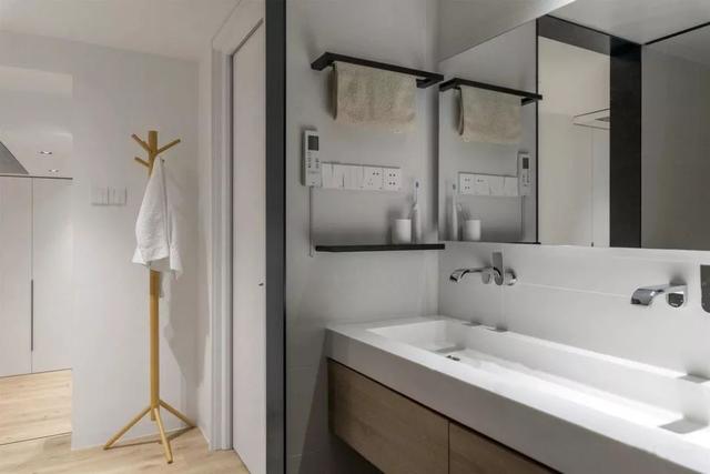 ▲通道區域側的墻面,空空的裝毛巾架很合適。