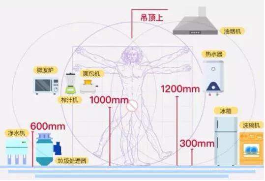 廚房空間一般不大,但需要的電器又很多,可以說是最麻煩的了。如果墻面上都不夠位置布置插座了,可以試試在吊柜底面布置哦。