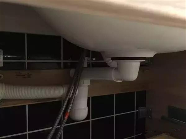 比如櫥柜水槽下方的下水管道是這樣的安裝方式: