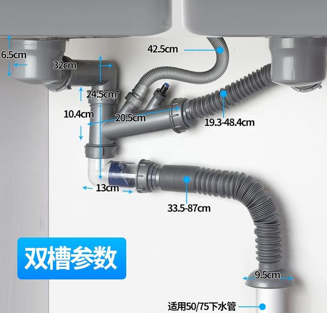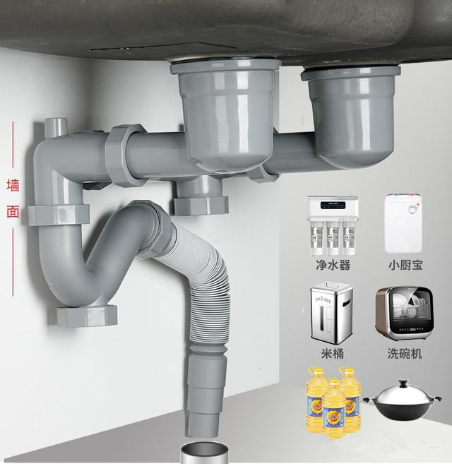 與浴室柜的下水管件類似,廚房水槽的也照樣可以選擇靠墻的下水管件,無論是單槽還是雙槽都可以找到相應(yīng)的產(chǎn)品。