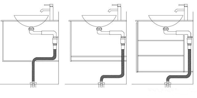 再比如說衛(wèi)生間浴室柜手盆下方的下水管道是這樣的安裝方式: