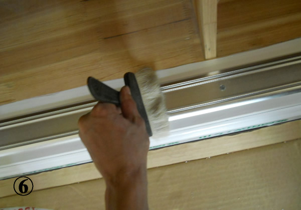 6、固定好下軌的位置,不管是新衣柜還是舊衣柜在安裝時都會有很多灰塵,這個時候用毛刷將軌道里層清理干凈。用螺絲刀擰緊所有關節處。