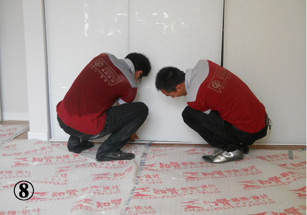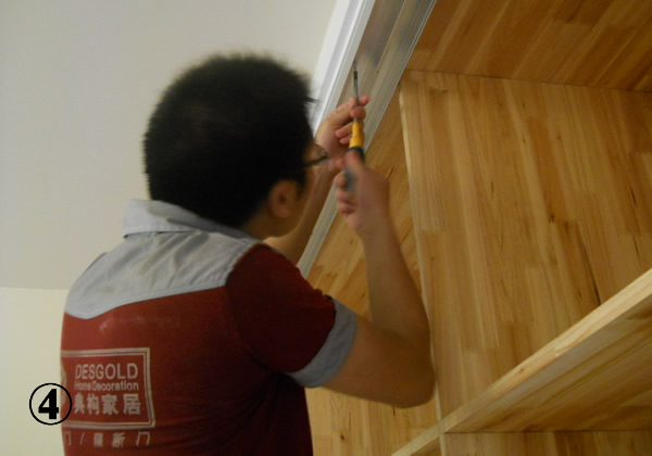 ? ? ? 8、這樣移門就順利安裝好了,處于對移門保護,下一步貼防撞條,目的是給移門起保護作用,防止小孩磕碰。