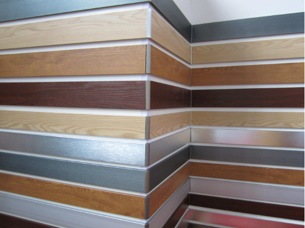 鋁合金踢腳線安裝便利、經(jīng)久耐用、防火防潮,解決了傳統(tǒng)踢腳線易受潮變形、老化、蟲蛀、表面貼紙脫落等問題。同時鋁合金踢腳線比重輕、裝飾效果較好。
