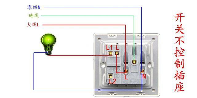 開(kāi)關(guān)控制燈:我們從插座的N并聯(lián)一根零線,然后火線并聯(lián)一根去開(kāi)關(guān)的L。開(kāi)關(guān)的L1出去進(jìn)燈上面。這種接線方式就是一開(kāi)五孔,開(kāi)關(guān)控制燈,插座也有電。
