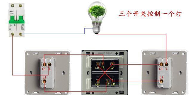 三個(gè)開(kāi)關(guān)控制一盞燈:三控與雙控最大的區(qū)別就是中間的多空開(kāi)關(guān),大家看他有6個(gè)點(diǎn),其中四個(gè)點(diǎn)需要交叉連接,接線技巧就從左往右:L1----L1 ---L21----L1。大家對(duì)照?qǐng)D中,如果走暗線的話,管子里面還是三根電,大家看L1---L2是雙控線,去燈燈上面的紅色線,實(shí)際穿線我們用三根。零線去燈,火線進(jìn)開(kāi)關(guān)。