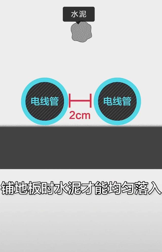 3、客廳地板剛鋪好就翹起來?都怪底下管道沒鋪好,地板下面的管道每隔80公分要用卡扣固定,管道之間相隔2公分,也就是剛好放得下一根管子在中間。因為這樣鋪地板是水泥才能均勻落入,這樣做的原因就是放空鼓!