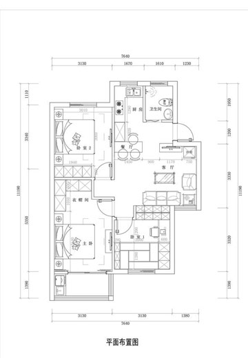 北次臥與主臥間墻面向南平移,封掉次臥客廳朝向房門改向主臥方向,次臥增加的空間可擺放衣柜拓展屋內功能性。