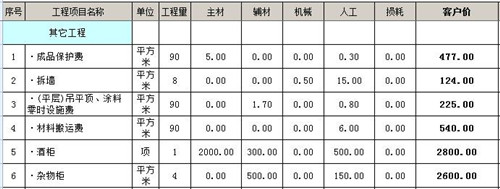 除了以上3個地方的收費以為,還包含了其他工程的收費:成品保護費、拆墻、吊平頂涂料零時設施費、材料搬運費等。
