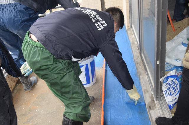 3、由于陽臺標高普遍較高,未能做找平層,所以建議使用地固先涂刷一遍,然后涂刷防水。