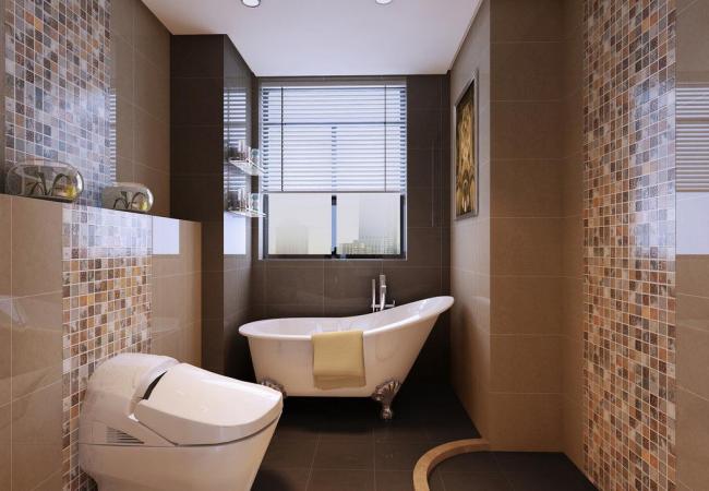 衛浴間的墻面瓷磚要注重防潮、防水,而且貼瓷磚時要保證平整,并要與地磚通縫、對齊,以保證墻面與地面的整體感;如遇到給水管路出口,瓷磚的切口要小、適當,方便給水器上的法蘭罩蓋住切口,使得外觀完美和自然。