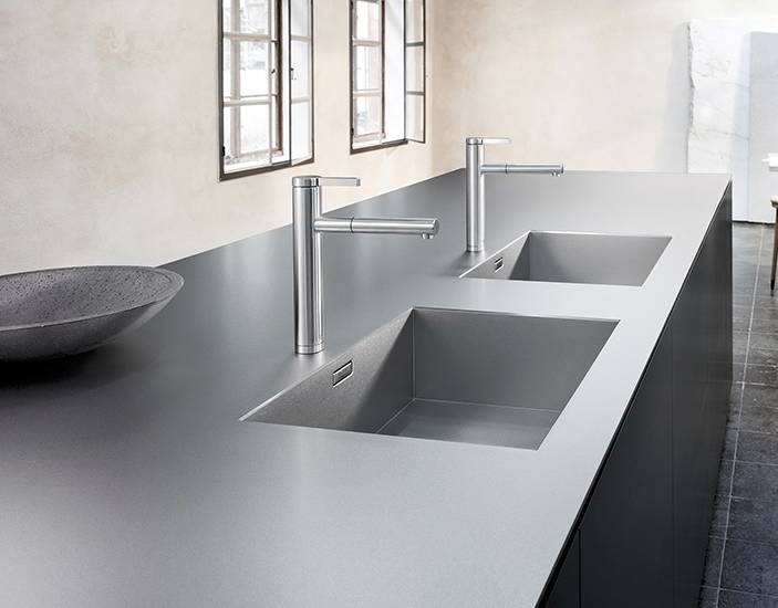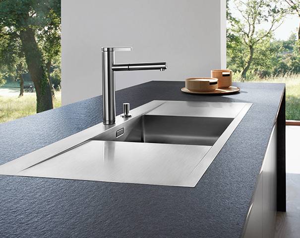 一體式安裝實際上需要產品與臺面高度配合,基本上水槽和臺面屬于同種材質,常見的有不銹鋼、人造石結構。不過相較于臺平式和齊平臺下式,供應商可以打包搞定。