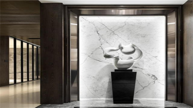 玄關區(qū)域,以白色大理石作為背景,搭配鍍鈦金屬的框塑,加以端景藝品畫龍點睛,營造吸睛的入門畫面。