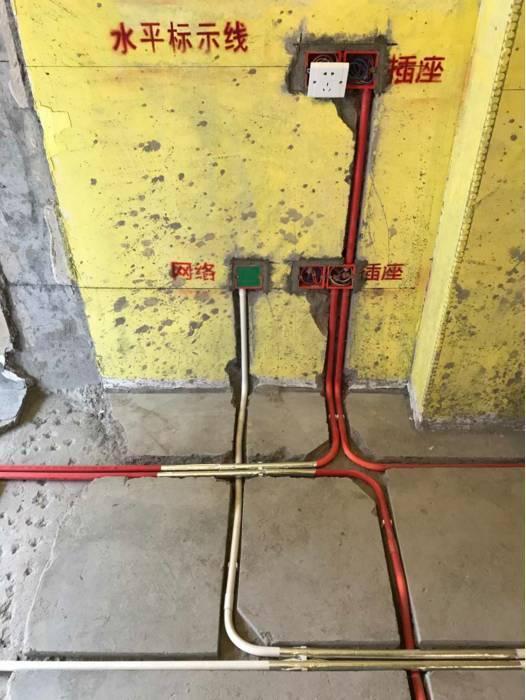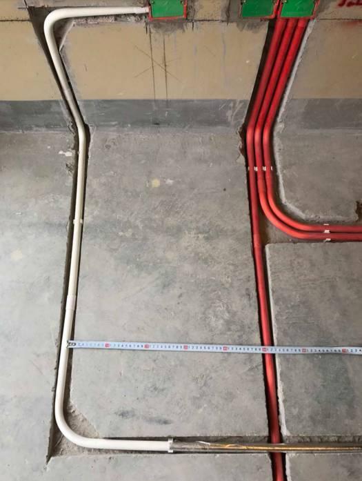 紅色為強電,白色為弱電,線管彎管在于相關線徑的6倍。