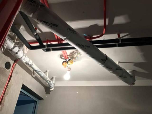 廚衛頂部有各種下水橫管和立管,為了確保隔音,建議采用隔音棉進行包立管。