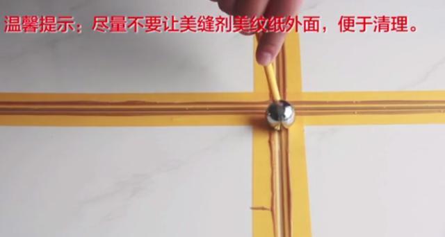 用這個壓縫鋼球把美縫劑弄均勻,使其能夠平滑壓入磚縫里,注意:壓縫鋼球的大小要選合適,一定要壓實了!