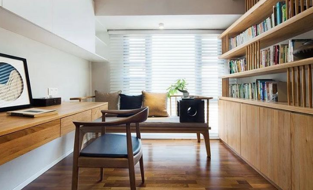 4、書房(辦公桌區域),首先臺面需要預留一個書房臺燈電插座,一個AP/TP端點,多媒體端口,一個電話端口,再加一個通用電源插座,定位在離臺面150mm左右即可。