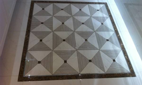 3. 地磚鋪貼方法之波打線鋪法:這種鋪貼法也稱花邊或波導線、邊線等。這種鋪貼法主要用在地面周邊或者玄關等處,是作為樓地面沿墻邊四周所做的裝飾線,寬度不一樣。這種鋪法與整體地面顏色不同的線條以增加設計效果。